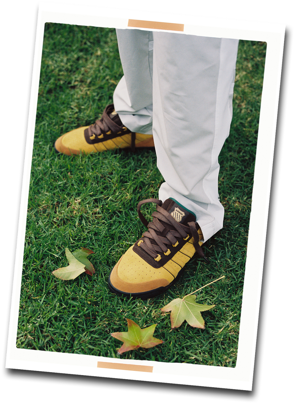 Anwar dook in het K‑Swiss archief en gaf iconische modellen een nieuwe look, met moderne materialen, kleuren en een creatieve twist.